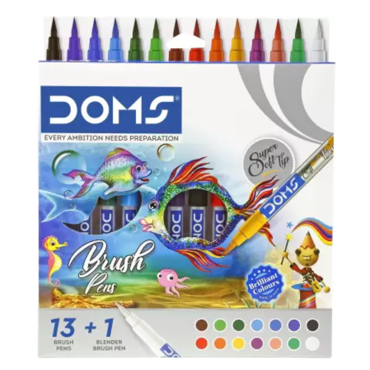 DOMS 14 Shades Brush Pen Box Pack Brush Tip Nib Sketch Pens (Set of 1, Multicolor)