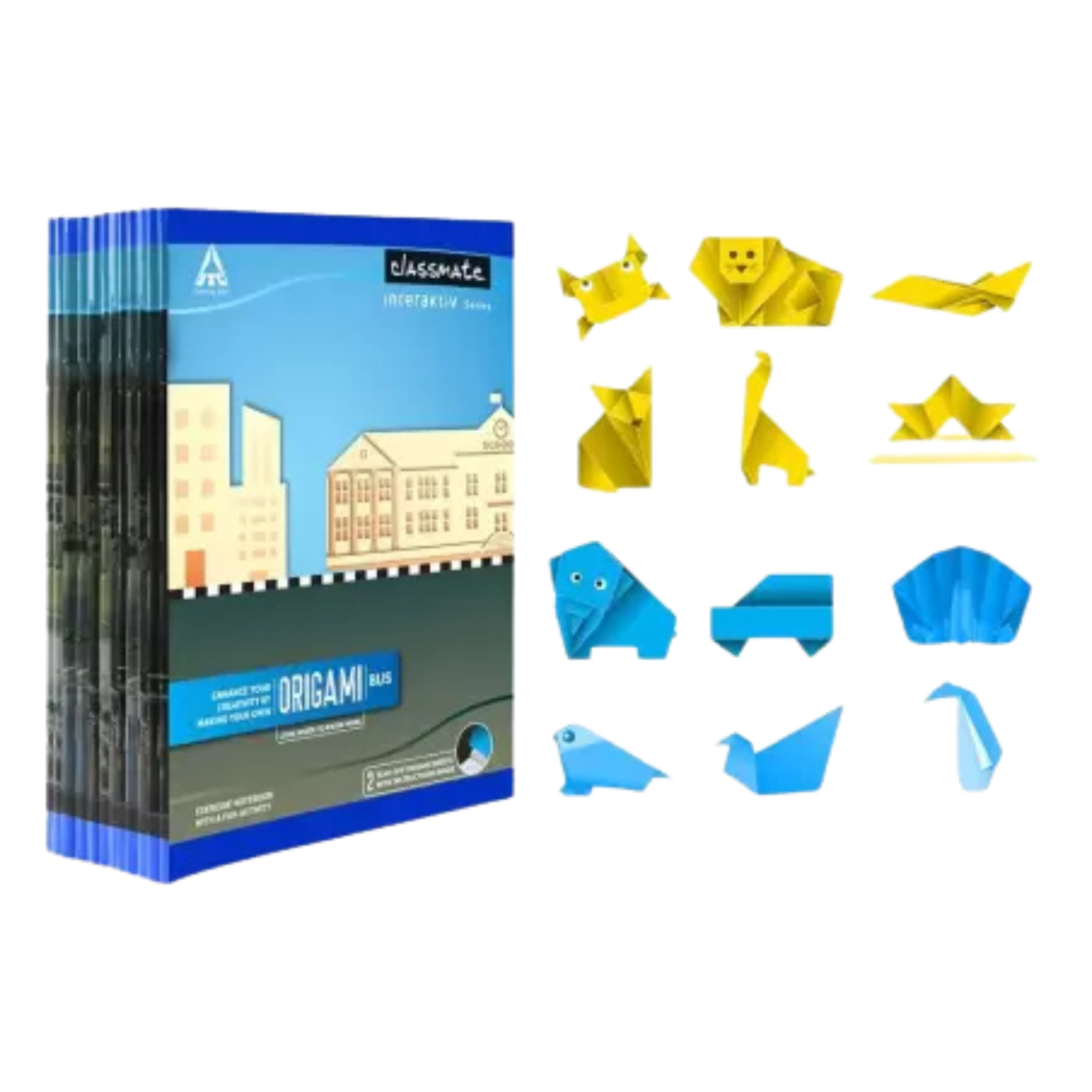 Classmate ITCCLASSMATE | Origami series| SWAN Book mark | 24 X 18 Cm | Regular Notebook Single Rule 168 Pages (Assorted, Pack of 4)